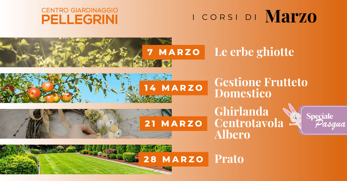 Abbiamo deciso di dare una scossa a questo fermento con quattro appuntamenti dedicati a chi non vuole limitarsi a guardare le foglie crescere, ma vuole sporcarsi le mani per farle esplodere. Che la vostra sfida sia portare in tavola i sapori genuini delle erbe, domare un frutteto ribelle, intrecciare la magia della Pasqua o conquistare finalmente quel prato perfetto che farà impallidire i vicini, abbiamo il corso ideale per trasformarvi da semplici spettatori a veri registi del vostro spazio verde