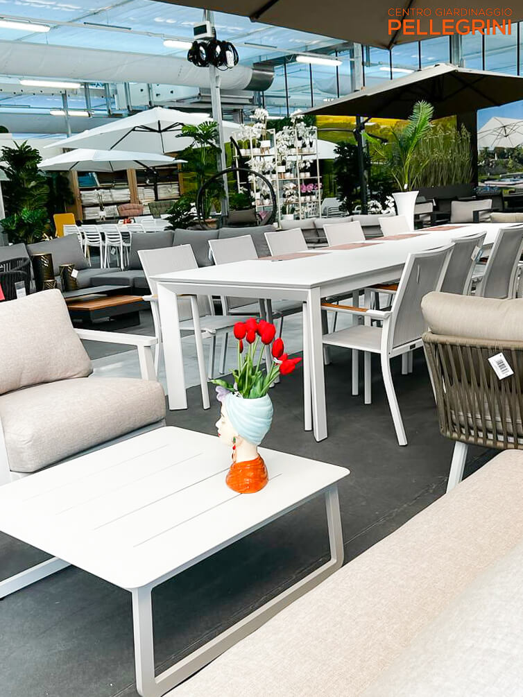 Che si tratti di eleganti sedute, tavoli raffinati o accessori d’arredo unici, troverai tutto ciò di cui hai bisogno per creare il tuo angolo di paradiso all’aria aperta.